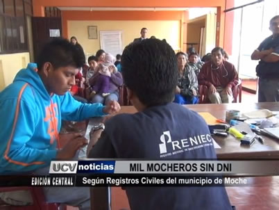 En Moche son cerca de mil moradores que no cuentan con DNI, según la Subgerencia de Registros Civiles de la comuna del distrito. Por ello, la referida área, en coordinación con el RENIEC, a fin de reducir la cifra, realiza campañas gratuitas para entregar los referidos documentos de identidad.