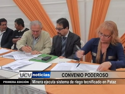 Esta mañana el Gobierno Regional y la minera Poderosa suscribieron un convenio de cooperación institucional para ejecutar un proyecto de sistema de riego tecnificado que beneficiará a 80 familias de Pataz.