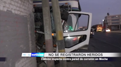 Un camión impactó contra la pared de un corralón en la Panamericana Norte, en el sector conocido como La Heroica, a la altura del distrito de Moche. Felizmente no se registraron heridos.