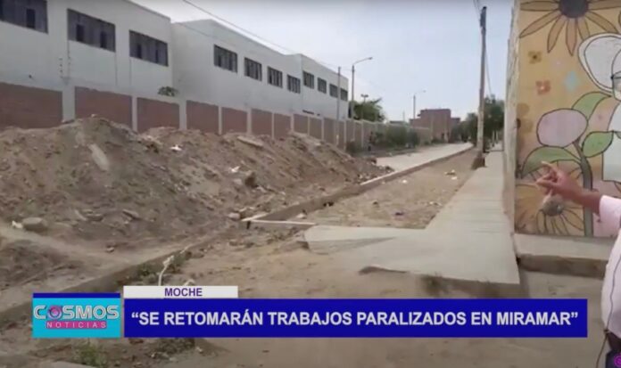 Una obra de mejoramiento de pistas y veredas en el centro poblado Miramar, distrito de Moche, luce aparentemente abandonada.