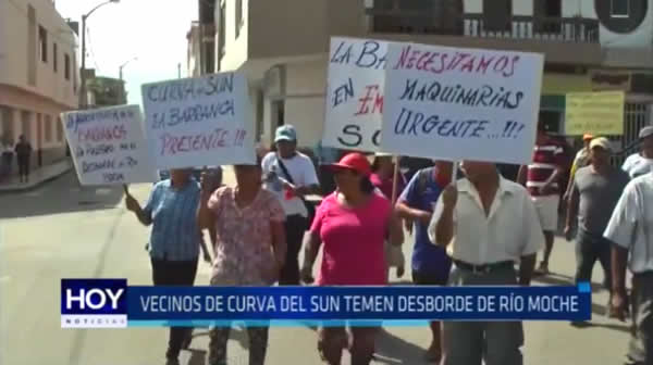 Moradores del centro poblado Curva del Sun protestaron en el frontis de la Municipalidad de Moche y exigieron el reforzamiento de la ribera del río Moche a la altura del sector La Barranca.