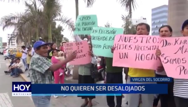 Moradores del sector Virgen del Socorro 2, de Huanchaco, protestaron en el exterior del Poder Judicial para exigir que no los desalojen.