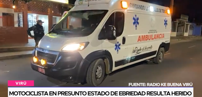 Un motociclista en aparente estado de ebriedad, resulto herido luego de chocar su unidad contra un automóvil, en la provincia de Virú.
