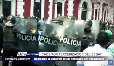 Las regidoras Cecilia Vilca y Esperanza Yarlequé casi fueron agredidas por un grupo de trabajadores del SEGAT, cuando se disponían a abandonar el municipio en un patrullero de serenazgo.