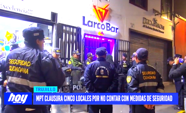 Cinco locales de diversión nocturna fueron clausurados por no contar con las medidas adecuadas de seguridad. El operativo estuvo a cargo de las subgerencia de defensa civil y seguridad ciudadana de la municipalidad de Trujillo.