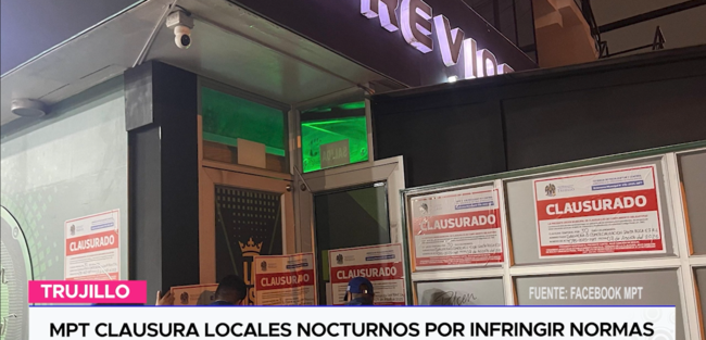 Uno de estos locales fue la discoteca «Los previos» ubicada en la avenida Larco, en Trujillo, la cual fue clausurada por segunda, según informó la autoridad. La razón de la clausura es que el local nocturno reabrió de manera ilegal, ignorando una orden de cierre vigente.