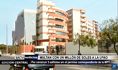 Con un millón de soles fue multada la UPAO por construir cinco edificios sin los permisos correspondientes de la Municipalidad Provincial de Trujillo (MPT). La moderna infraestructura podría ser demolida si no se adecúa a la ordenanza edil.