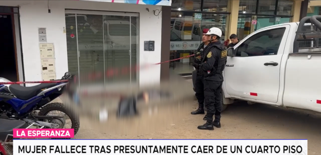Una tragedia ocurrió la mañana del sábado en el distrito de La Esperanza, cuando una mujer perdió la vida tras caer desde el cuarto piso de una vivienda.