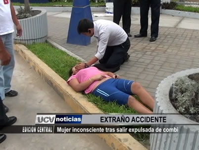 En un hecho confuso, una joven perdió el conocimiento tras salir expulsada de una combi de transporte urbano, en movimiento. El conductor del vehículo asegura que la pasajera se tropezó.