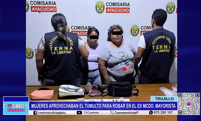 El grupo terna de la Policía Nacional del Perú detuvo a «Las yo no fui del mercado Mayorista», una banda criminal inmersa en el presunto delito de hurto agravado.