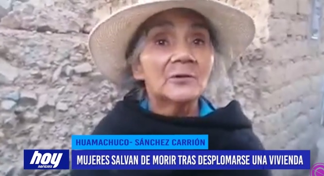 Tres humildes mujeres que vivían en una vivienda ubicada en la cuadra 1 del jr. Lara en el distrito de Huamachuco provincia de Sánchez Carrión, se salvaron de morir al desplomarse el lugar donde habitaban, ocasionado nada menos que un mal vecino, quien por limpiar, utilizando maquinaria pesada, el terreno donde va a construir no le importó traer abajo esta humilde casa construida con material de adobe y quincha.