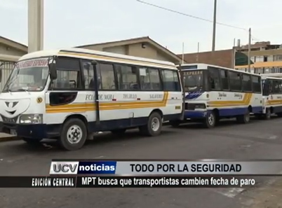 La teniente alcaldesa, Gloria Montenegro, indicó que el alcalde, César Acuña, apoya la protesta de los transportistas por la solución de la inseguridad, pero no avala que sea en los días de los Juegos Bolivarianos. Por ello, se encuentran dialogando con el gremio para que la fecha del paro se cambie.