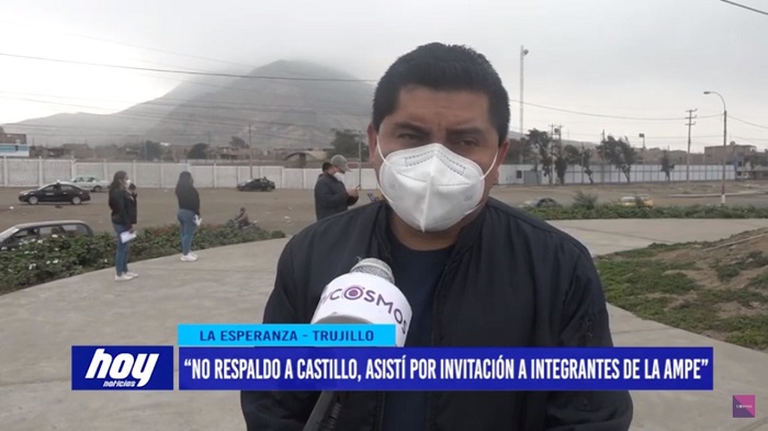 Alcalde del distrito de La Esperanza, tras su participación en el encuentro nacional de AMPE, aclaró que no dio su respaldo al candidato Pedro Castillo, sino que esta convocatoria de la AMPE estaba planificada, pues antes de las elecciones, el presidente hizo la invitación a los dos candidatos, sin embargo, solo se logró la respuesta de Perú Libre.
