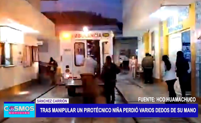 En la provincia de Sánchez Carrión, región La Libertad, una pequeña de solo nueve años tras manipular un material explosivo perdió varios dedos de la mano izquierda. Los médicos señalan que podría perder la mano.