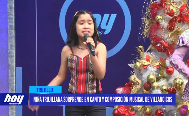 Y todavía es más sorprendente cuando esa persona tan joven. Este es el caso de Cristhine Antonella, una niña trujillana de 11 años que definitivamente ha llegado a los corazones de muchas personas a su alrededor, con su tema musical es navidad y lo presentó en Hoy Noticias para amenizar el ambiente navideño.