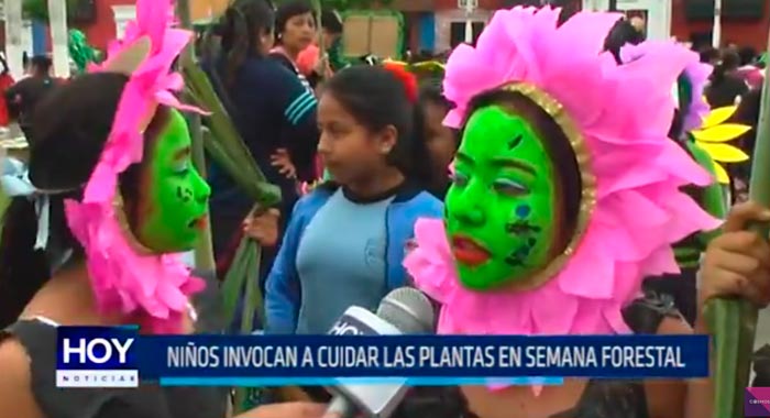 Por la semana Forestal Nacional cientos de niños con peculiares disfraces realizaron una campaña de sensibilización sobre el cuidado de las plantas.