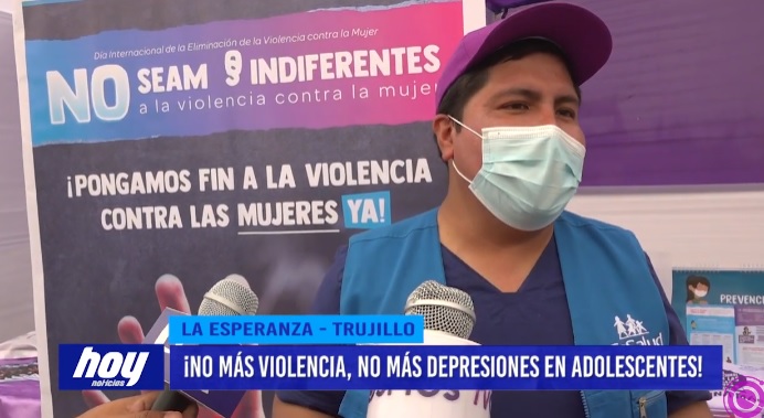 En la plaza de armas del distrito de La Esperanza ESSALUD La Libertad realizó una campaña de información, orientación en el marco del Día Internacional de la Eliminación de la Violencia Contra la Mujer. Personal médico confirmó que este tema también se aprecia en adolescentes lo que origina la depresión y hasta suicidios.