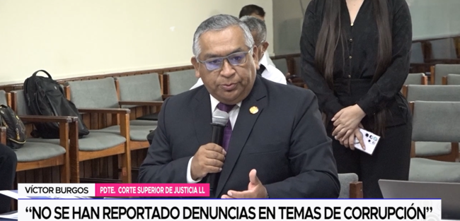 El presidente de la Corte Superior de Justicia de La Libertad, Víctor Burgos Mariños, participó recientemente en la sesión ordinaria descentralizada de la Comisión Especial Multipartidaria del Control Concurrente y Lucha Anticorrupción del Congreso de la República, donde precisó que los magistrados no han recibido reportes de denuncias en temas de corrupción.