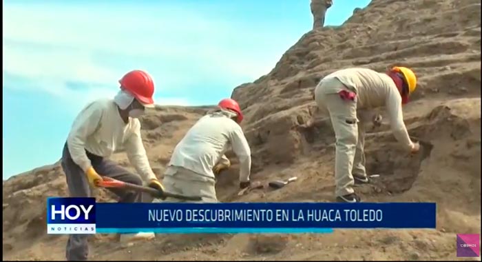 Descubren nueva escalinata ceremonial en la enigmática Huaca Toledo, en el complejo arqueológico Chan Chan. El hallazgo fue presentado junto a ceramios, textiles y objetos de metal que data de la última etapa del reino Chimú.