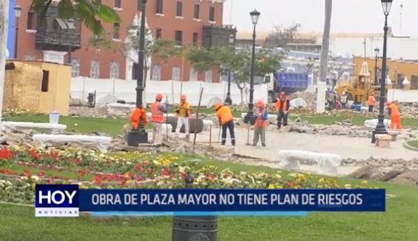 La obra de remodelación de la Plaza Mayor de Trujillo no cuenta con un plan de riesgos, pese a que el Organismo Supervisor de las Contrataciones del Estado (OSCE) lo exige.