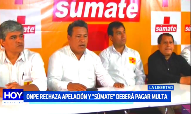 La ONPE declaró infundado el recurso de apelación interpuesto por el movimiento regional Súmate y ratificó la multa de más de 250 mil soles impuesta al grupo político por no presentar información financiera del año 2017.