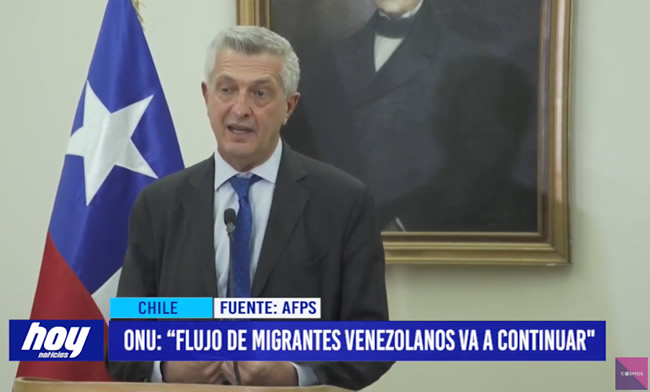 El Alto Comisionado de las Naciones Unidas para los Refugiados (Acnur) visitó Chile. Este país es el tercer país en recibir al mayor número de migrantes y refugiados de esa nación con 400.000 venezolanos. El alto comisionado tras reunirse con el gobierno de Sebastián Piñera, continuarán en una gira que seguirá en Brasil.