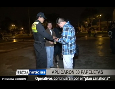 El «Plan Zanahoria» empezó con fuerza. Agentes de la Municipalidad de Trujillo y de la Policía, impusieron las 30 primeras papeletas a personas que fueron encontradas bebiendo licor en la vía pública.