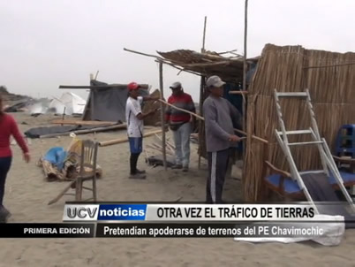 20 familias fueron desalojadas de un terreno del proyecto especial Chavimochic, en el balneario de Las Delicias. Detrás del presunto tráfico de tierras estaría el ex jefe de seguridad del citado proyecto, Luis Tirado.