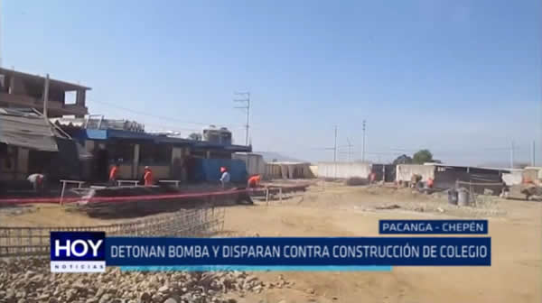 En la localidad de Pacanga, provincia de Chepén, delincuentes detonaron una bomba y dispararon contra un colegio en construcción. Exigen un cupo de 50 mil soles y trabajar en la obra.