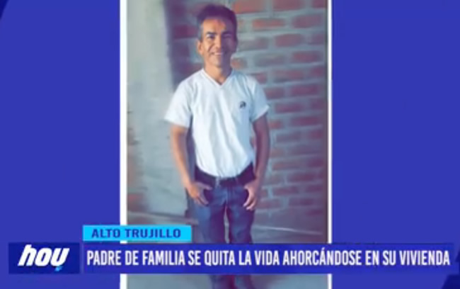 La víctima llevaba un tiempo separado de su pareja con quien tiene tres hijas. El último fin de semana se fueron a la casa de su abuela. Su ex cónyuge llegó hasta su vivienda del barrio 3 B de Alto Trujillo, para sacar el DNI de una de sus hijas, quien pasaría consulta médica, sin sospechar la fatídica escena que encontraría. Juan Piña, yacía ahorcado de una cuerda en la viga de una habitación.