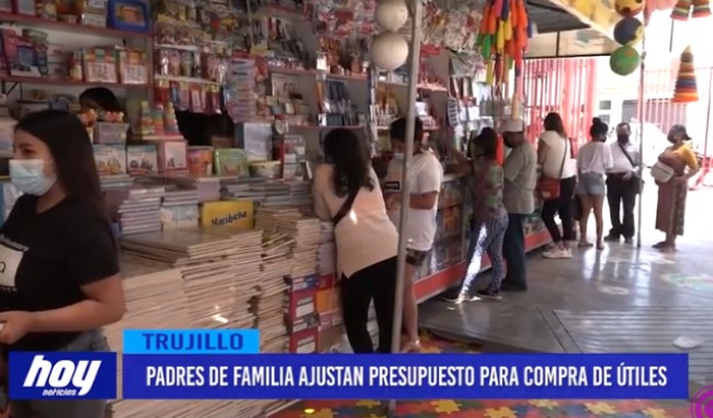 Si bien en varias instituciones educativas de la ciudad de Trujillo, iniciaron las clases semipresenciales, aún padres de familia vienen ajustándose para que su corto presupuesto producto de la pandemia, pueda alcanzar para completar la lista de útiles escolares de sus hijos. Por ejemplo, en esta feria ubicada en el centro comercial Plaza Toros, muchas personas llegaron con sus listas, cruzando los dedos para lograr comprar la mayor cantidad de útiles.