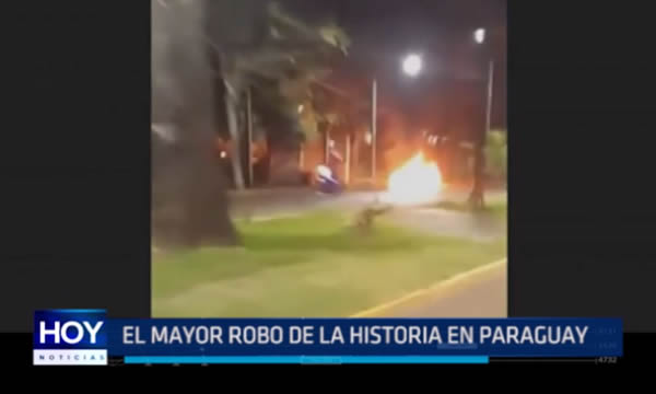 Vemos imágenes captadas durante la madrugada de ayer, tras el espectacular asalto que culminó con el robo de 40 millones de dólares a la empresa Prosegur, en Ciudad del Este, Paraguay. Los delincuentes utilizaron bombas y armas de guerra para perpetrar su delito, al cual se ha calificado como el mayor robo en la historia del país.