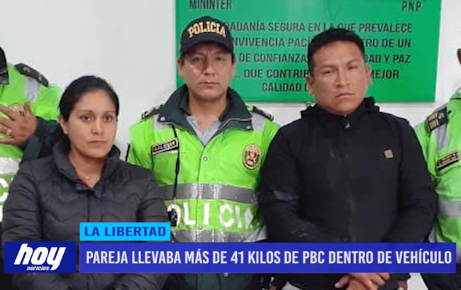 Una pareja fue intervenida por la policía con más de 41 kilos de pasta básica de cocaína en la carretera de penetración a la sierra de La Libertad.