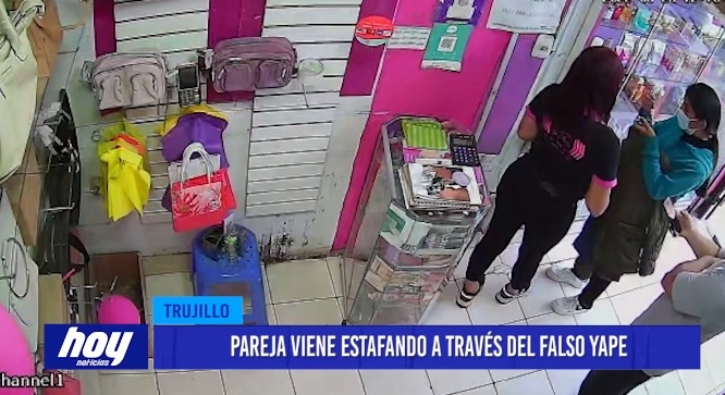 En la ciudad de Trujillo en esta perfumería ubicada en la av. los Incas cuadra cinco, esta cámara de seguridad captó a esta joven pareja ingresar a esta tienda con el afán de adquirir varios productos, se trata de presuntos estafadores que pagan con Yape falso y sorprenden a varias vendedoras en plena luz del día .