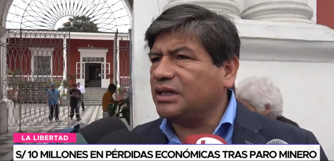 El consejero regional por Pataz, Luis Rodríguez, señalo que tras el paro minero su provincia se ha visto perjudicada con pérdidas económicas de entre 5 a 10 millones de soles.