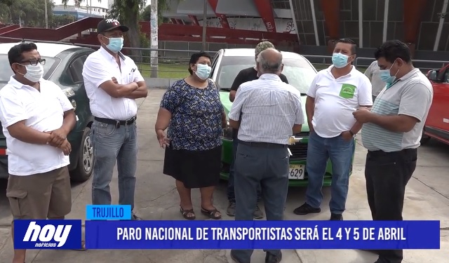 Anuncian un paro radical este 4 y 5 de abril, pdte. del Frente de Defensa de Taxistas de Trujillo, señaló que tras reunión de dirigentes acordaron el paro nacional definitivo para estas dos fechas, pues exigen al gobierno la reducción al impuesto al rodaje entre otros pedidos.