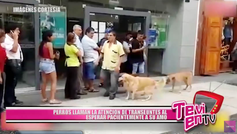 Como se dio el caso de estos perritos que esperaron a su amo en la puerta del banco y como se aprecia en el video, no se movieron hasta que vieron salir, se levantaron, se alegraron, lo saludaron y lo siguieron en su camino.