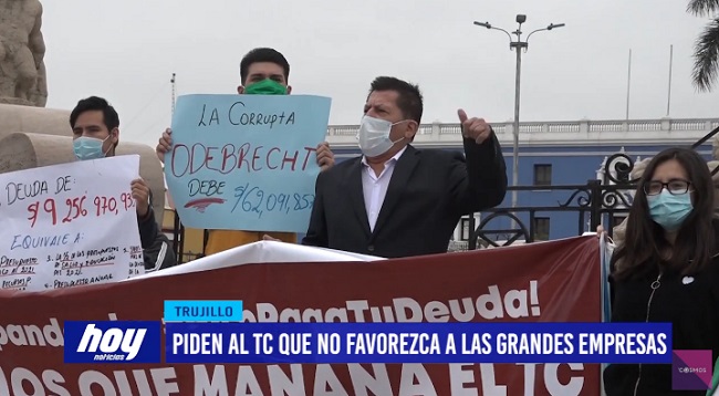 El congresista Lenin Bazán, de Frente Amplio, y representantes de la sociedad civil organizada, se congregaron en la plaza de armas de Trujillo, para pedir al Tribunal Constitucional que no apruebe la demanda del colegio de abogados de la Libertad. La misma que busca la prescripción de la deuda conjunta de 11 mil millones de soles, por parte de grandes empresas.