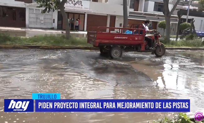 Los vecinos de la urbanización Las Quintanas piden a la comuna provincial de Trujillo un proyecto integral para el mejoramiento de las pistas de las cuadras 4, 5 y 6 de la avenida Hermanos Uceda Meza pues las lluvias y aniegos provocados por el colapso de tuberías de agua dañan las vías continuamente.