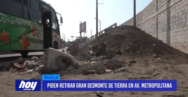Vecinos se mostraron mortificados por este desmonte de tierra que según señalan lleva una semana en la av. Metropolitana y a la fecha el personal del Servicio de gestión Ambiental de Trujillo no lo retira, lo que ha generado muchas incomodidades como el ingreso de tierra y polvo a sus viviendas.
