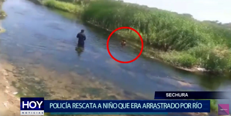 Un niño con habilidades diferentes fue rescatado por Agentes de la Policía, en los precisos momentos cuando era arrastrado por las turbulentas aguas del Río Sechura.