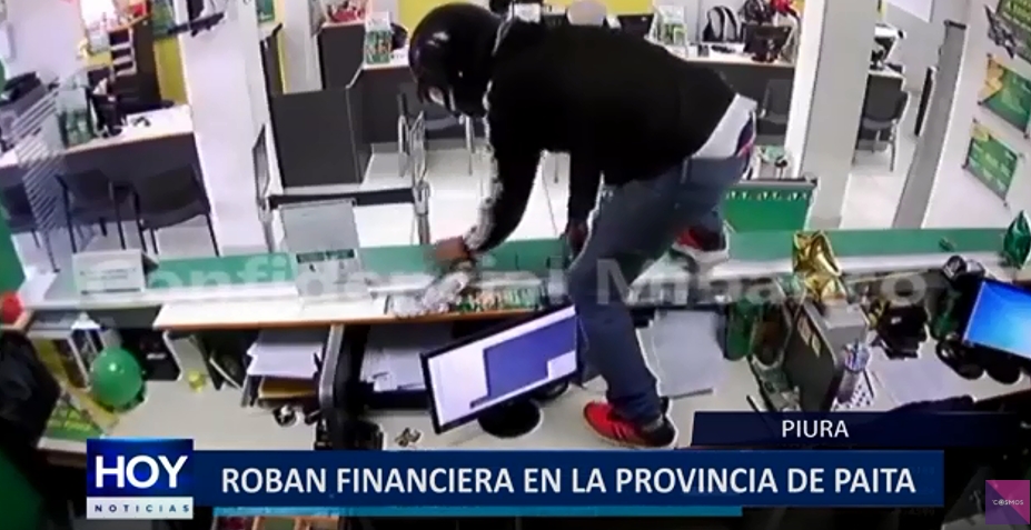 Un grupo de asaltantes, usando cascos y gorros, y portando armas de fuego ingresaron a la financiera «Mi Banco», ubicada en el sector denominado «Ciudad del pescador»,y se llevaron más de 8 mil soles.