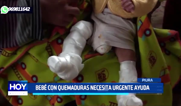 En Piura, un bebé de apenas cuatro meses de nacido necesita medicamentos para curar sus quemaduras de segundo grado, producto de un incendio originado dentro de una carpa de damnificados.