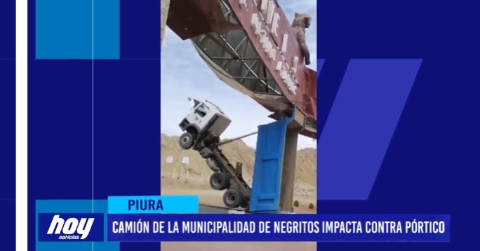Un vehículo volquete perteneciente a la Municipalidad Distrital de la “Brea Negritos” impactó contra el pórtico del distrito recientemente construido, destruyendo la estructura metálica del arco, la bases y la caseta de seguridad.