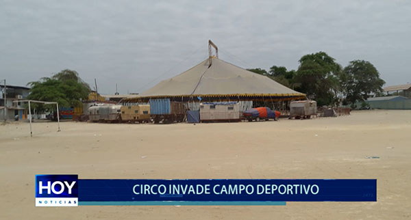 Moradores denuncian que circo estaría invadiendo espacio deportivo y área de fiscalización no hace nada para reubicarlos.