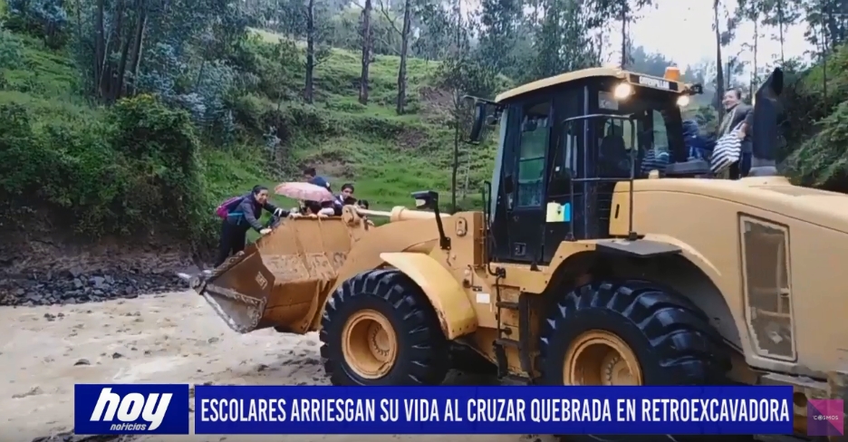 En Huancabamba escolares y docentes tienen que arriesgar su vida para poder asistir a sus centros de estudios al cruzar la quebrada «Olmitos» que aumentó su caudal tras las fuertes lluvias.