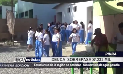 En Piura, 100 mil niños de 150 colegios se verán afectados con el corte de servicio de agua potable debido a deuda que asciende a 232 mil soles.