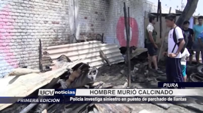 En Piura, un hombre murió calcinado tras incendiarse su puesto de parchado de llantas. La policía investiga las causas que originaron el fuego.
