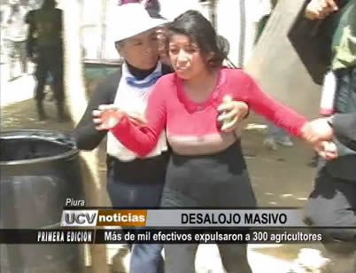 Cuatro heridos, uno de ellos policía, fue el resultado del desalojo de 300 agricultores de la cooperativa San José de la Golondrina en Marcavelica, provincia de Sullana, en Piura. Más de mil efectivos policiales fueron trasladados para la diligencia judicial.