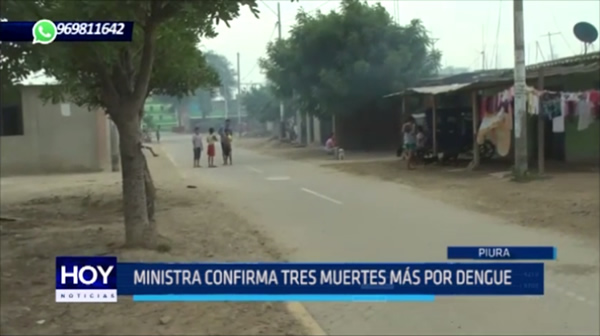 En Piura, la ministra de Salud, Patricia García, confirmó tres nuevas muertes por dengue en esa región. Con ello, la cifra oficial de víctimas mortales se eleva de 22 a 25.